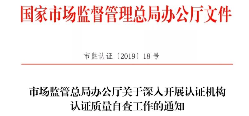 为进一步贯彻落实《市场监管总局关于加强认证检测市场监管工作的通知》(国市监认证〔2018〕173号)及市场监管总局《假冒伪劣重点领域治理工作方案(2019—2021)》,督促认证机构落实主体责任,深入排查认证质量风险,推动质量认证工作规范健康发展,经市场监管总局同意,决定组织开展认证机构认证质量自查。现就有关事项通知如下: